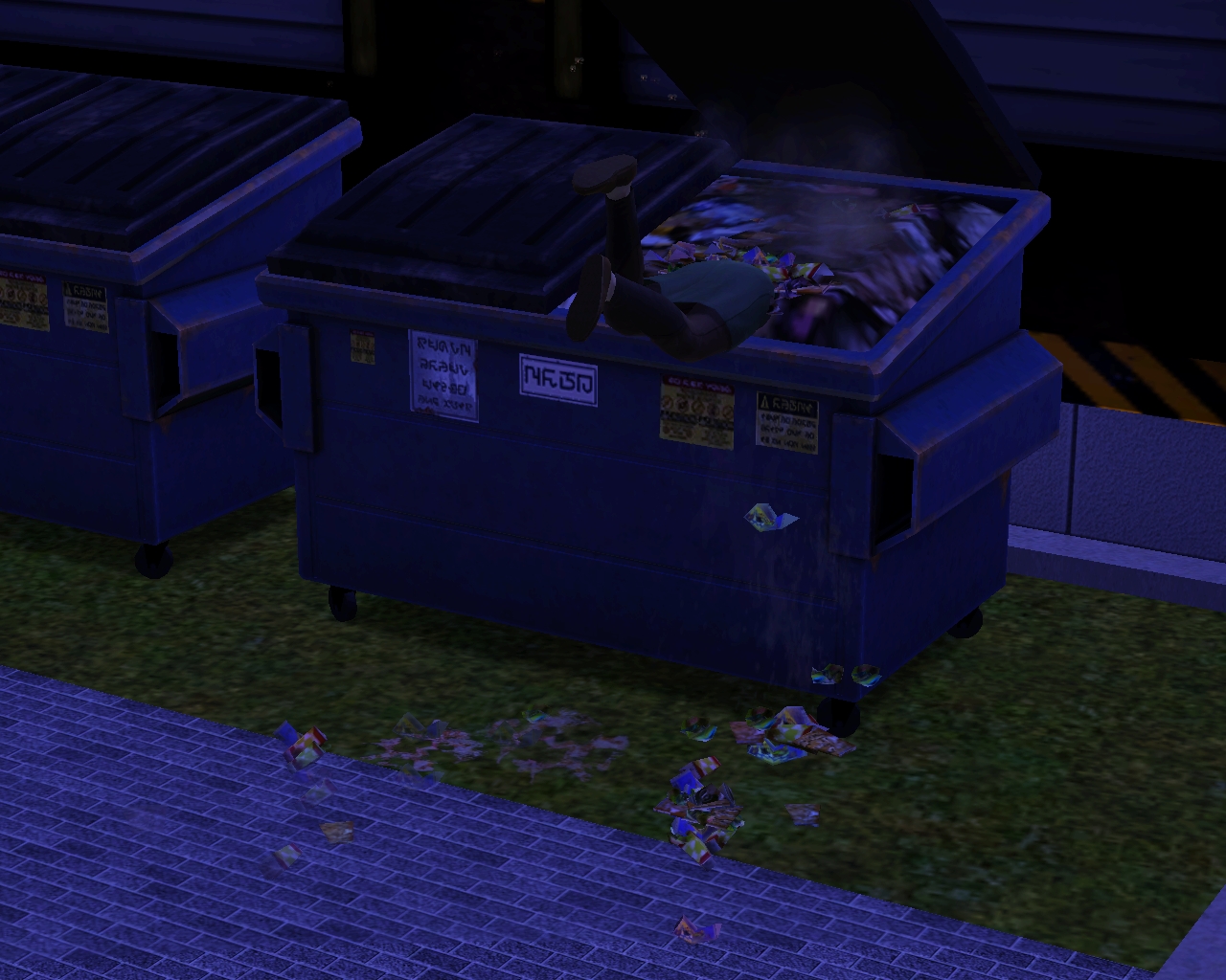 After eating Arac has nothing else to do, so he goes next door to do a little more dumpster diving.